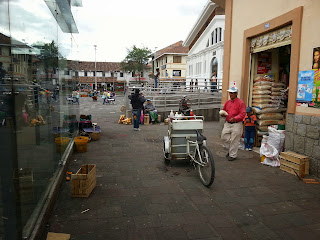 相片背後為昆卡最大的教堂Catedral de la inmaculada concepción.該教堂建於1885年,從外看可能會覺得沒甚麼特別,但裡面可是採用金箔彩繪的玻璃,為該教堂的象徵。
